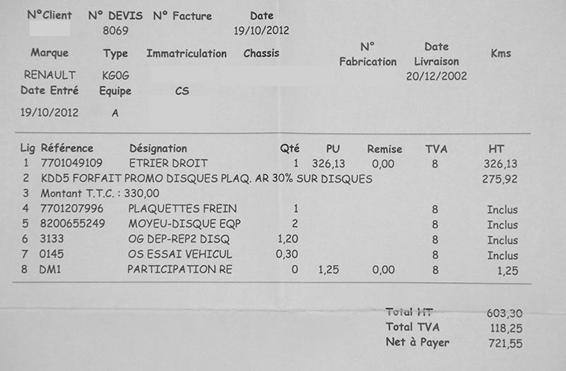 À la suite d’un contrôle technique, et d'un problème de freinage sur ma Laguna 2 Estate (2003, 150 000 kms)