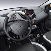 Comme sur Twingo R.S., l’intérieur est valorisé par des surpiqures jaunes sur volant, sièges et casquette de planche de bord. Des inserts noir brillant agrémentent la planche de bord et sa console radio, le boîtier de compte-tours et les aérateurs latéraux. En termes technologiques, la nouvelle radio First et le système R.S. Monitor sont proposés de série.