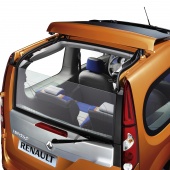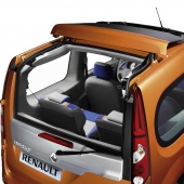 L’escamotage de la vitre arrière (depuis le poste de conduite ou depuis le bouton de la clé de contact) sert également à charger directement sans ouvrir le portillon, par exemple pour des courses rapides ou s’il n’y a pas assez de place pour l’ouverture. Deux crochets sont d’ailleurs prévus à gauche du coffre pour suspendre de petits sacs. Il existe deux positions d’ouverture du portillon. La première position, intermédiaire, offre un accès au coffre dans les espaces réduits. La seconde permet une ouverture à 85° optimisant l’accessibilité à l’espace de chargement. En ouvrant le toit en verre arrière et en escamotant la vitre du portillon, la capacité de transport de Renault Kangoo be bop est encore démultipliée : transport d’objets hauts, transport d’objets longs en appui sur la barre de porte prévue en accessoire.