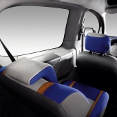 La planche de bord et les sièges avants sont repris du Kangoo, mais le choix pour les places arrières s’est porté sur deux sièges indépendants et rehaussés, ce qui permet d’obtenir un vrai « salon 4 places ».