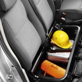 - Un grand rangement sous-banquette accessible en relevant l’assise des sièges passagers. L’absence de compartiment permet d’y loger des objets plus volumineux.