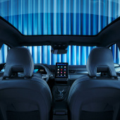 Outre la luminosité qu’il apporte, l’innovation réside surtout dans le fait de pouvoir le rendre opaque par zone, et ce, à la demande grâce à la technologie PDLC. Ainsi, les passagers avant et/ou arrière peuvent choisir une opacité différente, et ce, à la voix grâce à l’assistant Google ou via des commandes à bord du véhicule.