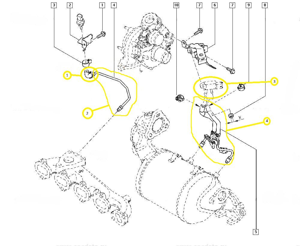 - démontage (non sans mal) et nettoyage des 2 tuyaux reliant le capteur différentiel au FAP (4).