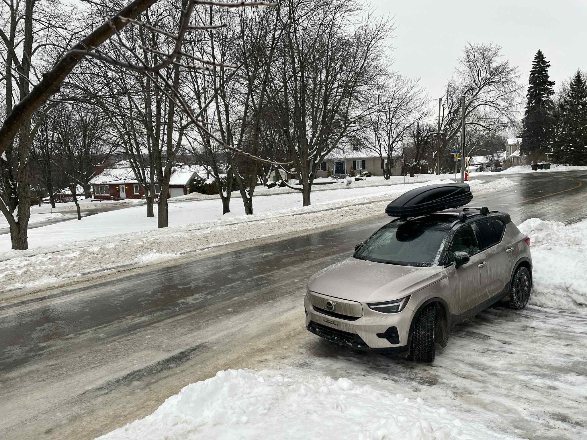 J'avais vu deux autos passer prudemment sur la rue, ça avait l'air de le faire, mais j'ai pas désalé la pente à 8% avant de m'engager.