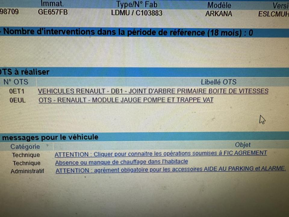 La deuxième OTS la plus importante, en volume, reste de couleur bleue. Elle a reçu le code 0EUL et touche cette fois 37 735 exemplaires du premier SUV-coupé au losange, tous assemblés entre le 1er octobre 2021 et le 26 septembre 2022. C'est donc bien avant le discret restylage de l'Arkana. Le service communication de la marque précise en outre que "nous ciblons large pour éviter des désagréments potentiels à nos clients, mais les sujets ne concernent que quelques véhicules à chaque fois". Cette intervention consiste à reprogrammer deux calculateurs (HECM et HEVC dans le jargon des ingénieurs) afin d'éviter l'apparition du témoin orange "Vérifier système électrique" au tableau de bord, ou, à l’arrêt du véhicule, du message rouge "Panne électrique danger" suivi d'une impossibilité de redémarrer.