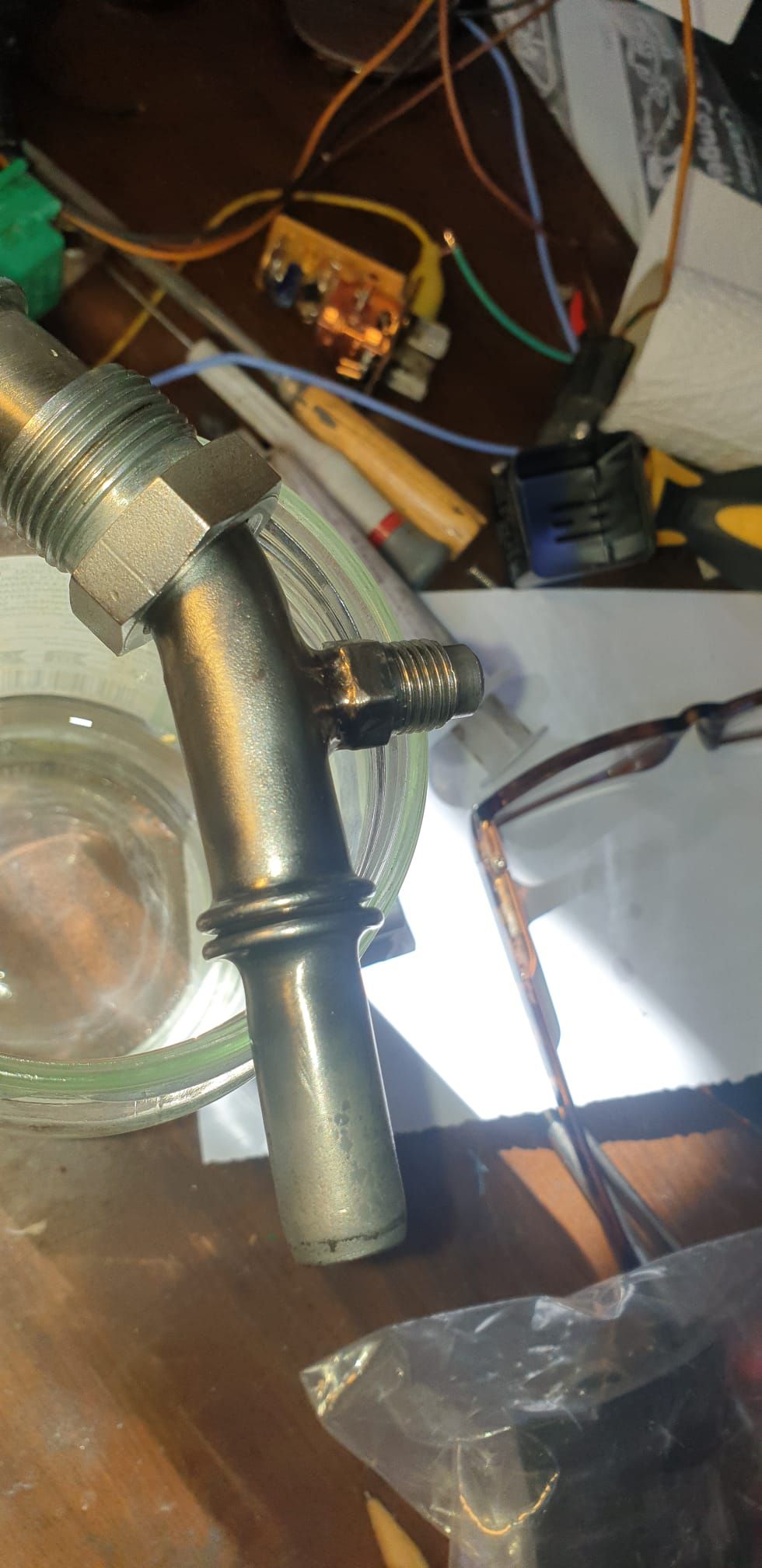 j'ai commencé par souder l'embout droit du coté bouteille pour avoir une idée du résultat ! test réussi
