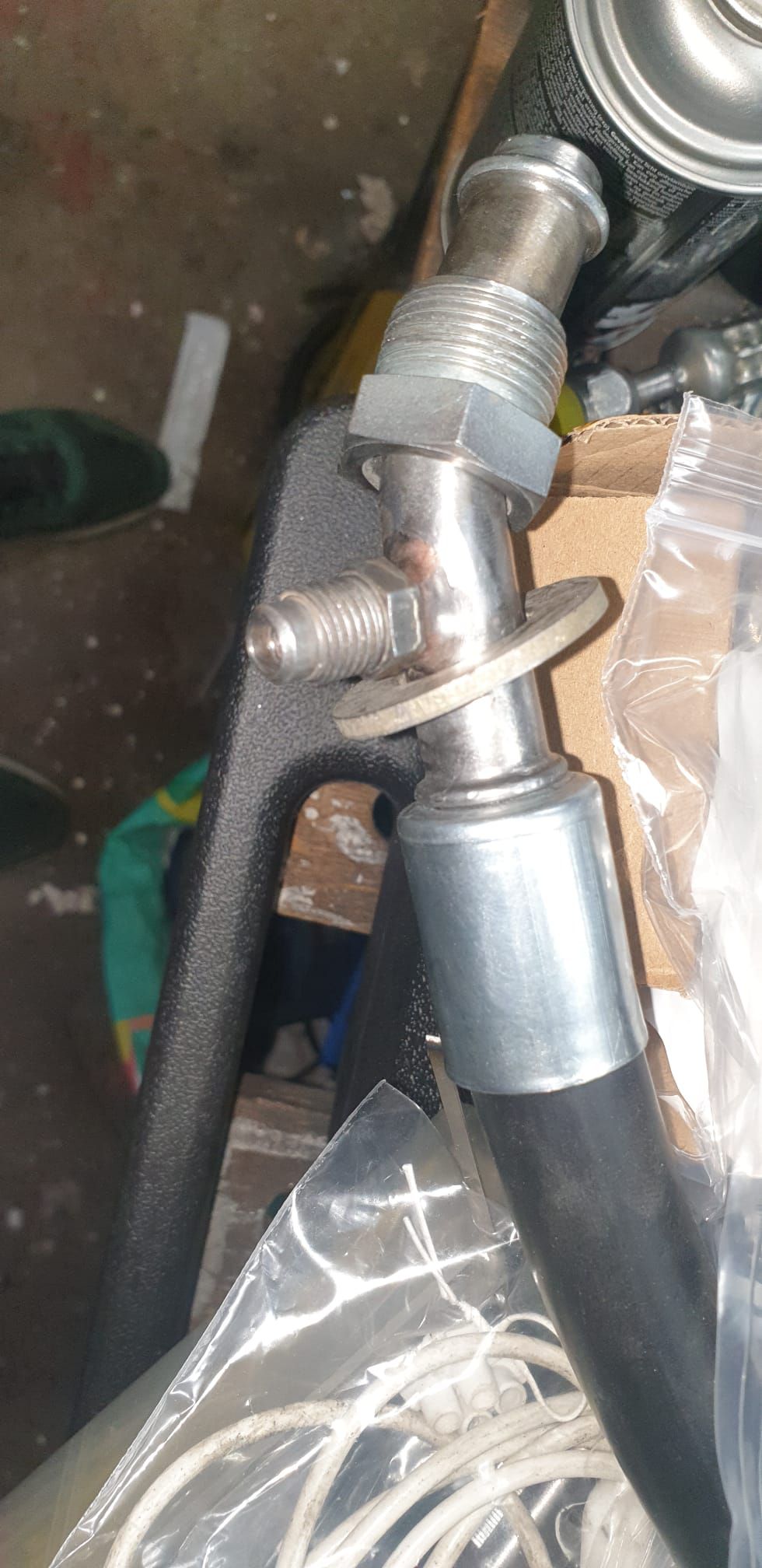 sur la derniere photo on vois l'embout avec la valve soudée et la virole prete a etre sertie sur le tuyau , la rondelle a servi a ecraser le cul de la virole (préalablement élargi ) pour qu'elle rentre dans les rainures comme l'ancienne virole .....du superflu mais bon ...j'ai en suite coupée et supprimée la rondelle .