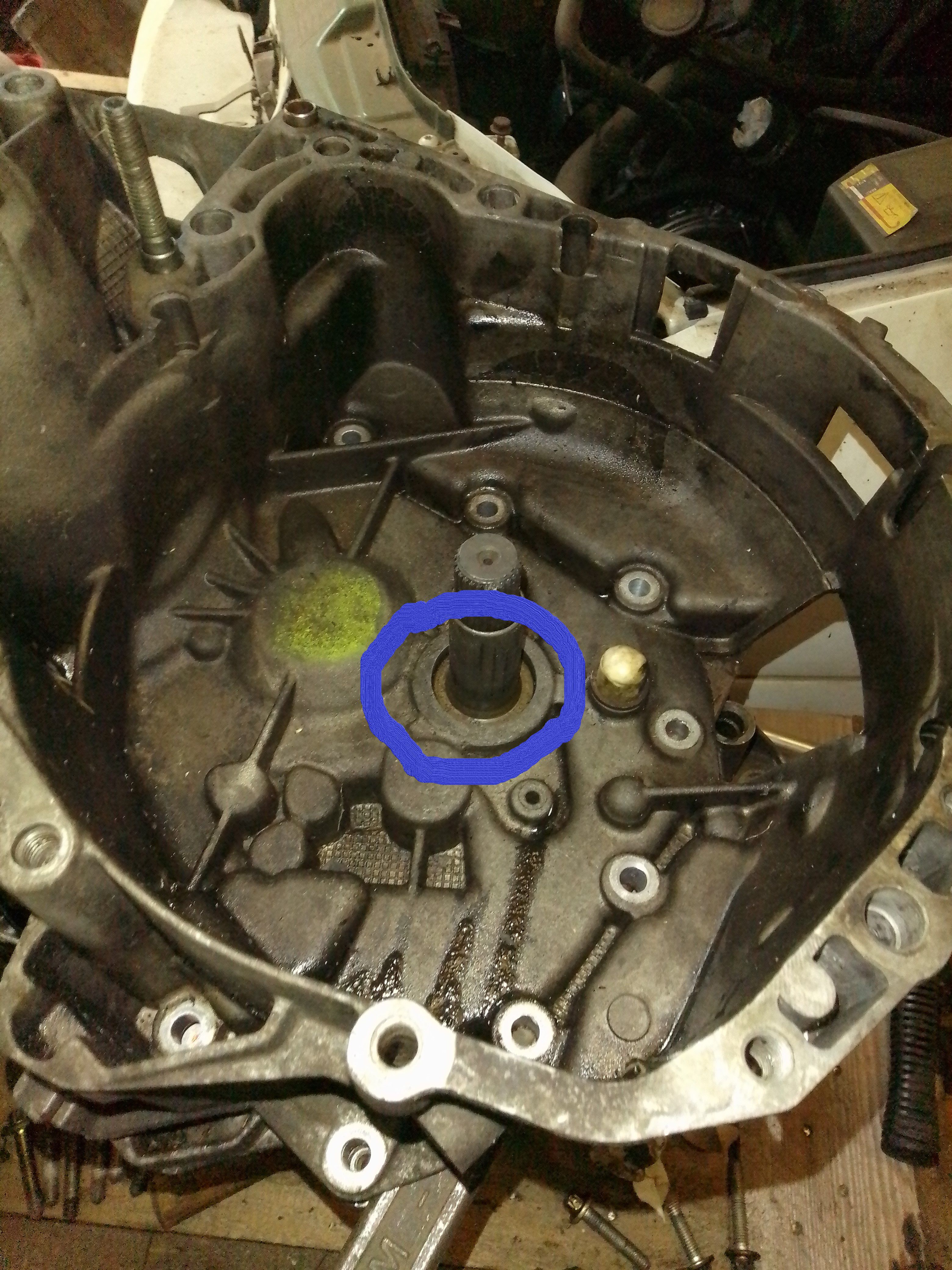 Bonjour, je dois changer le joint d'arbre de boite de vitesse qui fuit ... entouré sur la photo. Mais je n'arrive pas a ouvrir le couvercle. il recule d'environ 1cm et après plus moyen ... est-ce que quelqu'un connait la combine? Merci de votre aide .
